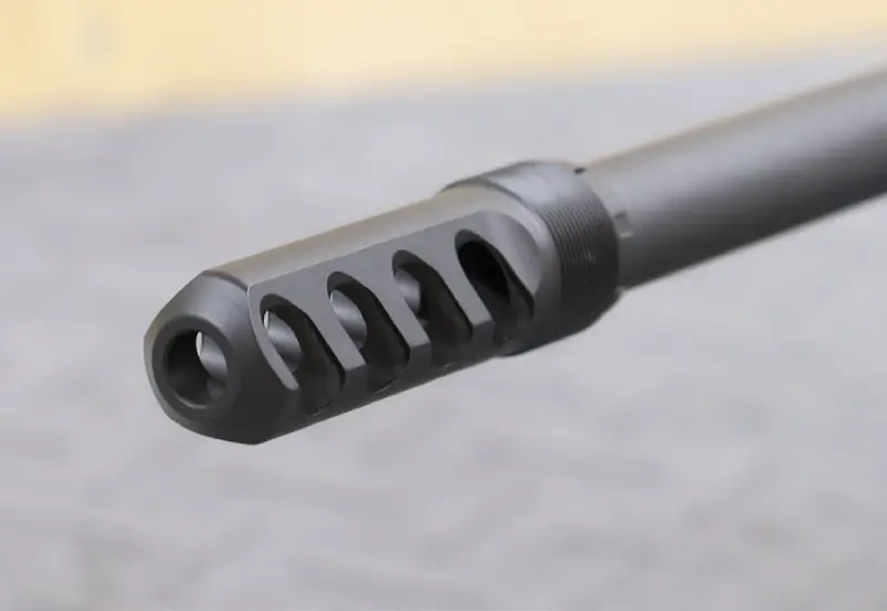 Le nouveau design du frein de bouche Cadex MX2 Self Timing Muzzle Brake est né de la nécessité d'offrir un frein de bouche suffisamment petit pour s'intégrer dans un design de suppresseur compact. Cadex a abandonné les rondelles d'écrasement au profit d'une bague de verrouillage, ce qui vous permet d'installer et de retirer le MX2 rapidement et facilement à l'aide de la clé incluse. L'extrémité du frein de bouche est conique pour aligner parfaitement le suppresseur compact. Le MX2 Self Timing Muzzle Brake est léger tout en conservant des performances suffisantes pour contrôler le saut de bouche de la carabine. Plusieurs tailles d'alésage sont disponibles de .30 à .33. Livré en standard sur les carabines de la série CDX-R7 SHP.