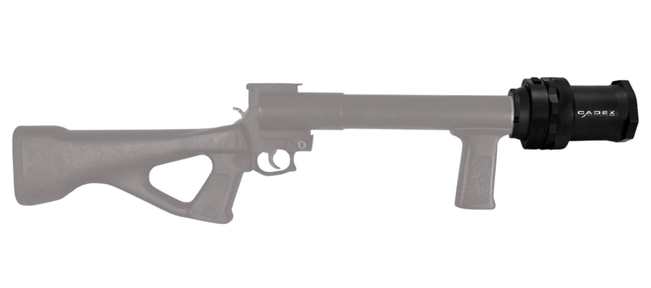 La coupelle de lancement 37 mm de Cadex est idéale pour les situations moins meurtrières et le contrôle des foules. La coupelle de lancement est utilisée avec une cartouche balistique de 37 mm. La coupelle de lancement Cadex est dotée d'un système de ventilation unique qui permet à l'opérateur de lancer une grenade chimique déployée à la main à des distances graduées de 40, 60 et 100 m.