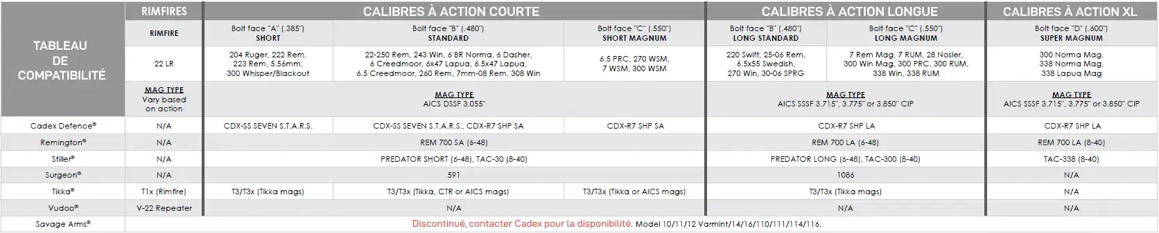 Pour toute Defiance Machine® ou Rem 700 Custom Clones, contactez Cadex pour valider la compatibilité avant la commande.