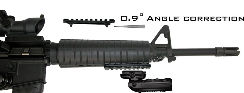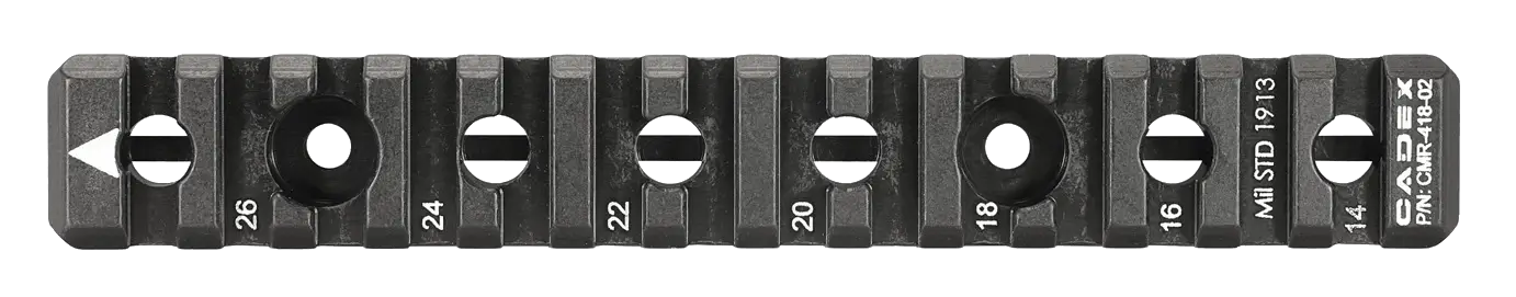 The Cadex 6″ carbine Picatinny rail attaches to the handguard of the M4/C8 carbine or M16/C7 rifle to provide a sturdy Picatinny rail for mounting grips, lasers and other accessories. Also, fit AR15s equipped with an A2 handguard. The rail’s base is angled to match the handguard taper.