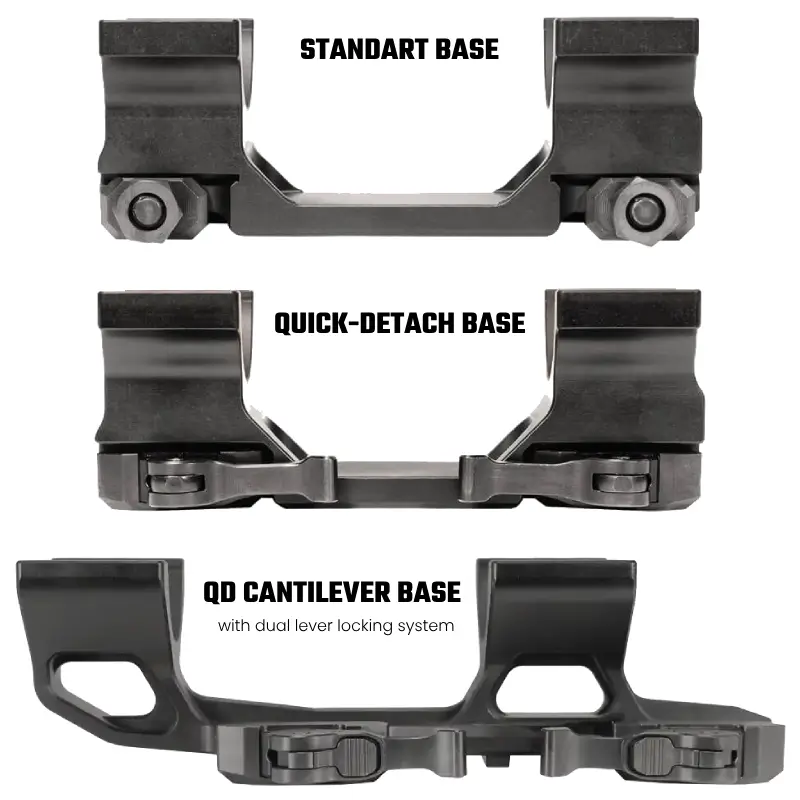 - Quick-Detachable (QD) base: This version allows rapid removal and reinstallation of your scope. It only results in a minor shift of point of aim, making it ideal for users who want to reuse a single optic across multiple rifles without compromising accuracy.